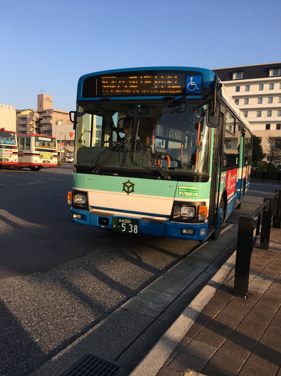 城下町ゆえ道の広さから所有している車両には中型車が多いという特徴があります。公営のバスはほとんどがオートマチック化されているのに対し、やはりミッション車が多いのは新車で導入されている車両の少なさに起因しているのでしょうが、さすが公営バスだけあってほぼ全てがノンステップバスで運行されています。ただ手掛けている観光バスはふた昔前の車両がほとんどなのは少し残念ですが、都市部で使われなくなった車両が元気に走っている姿は、バスフェチにはたまりません!