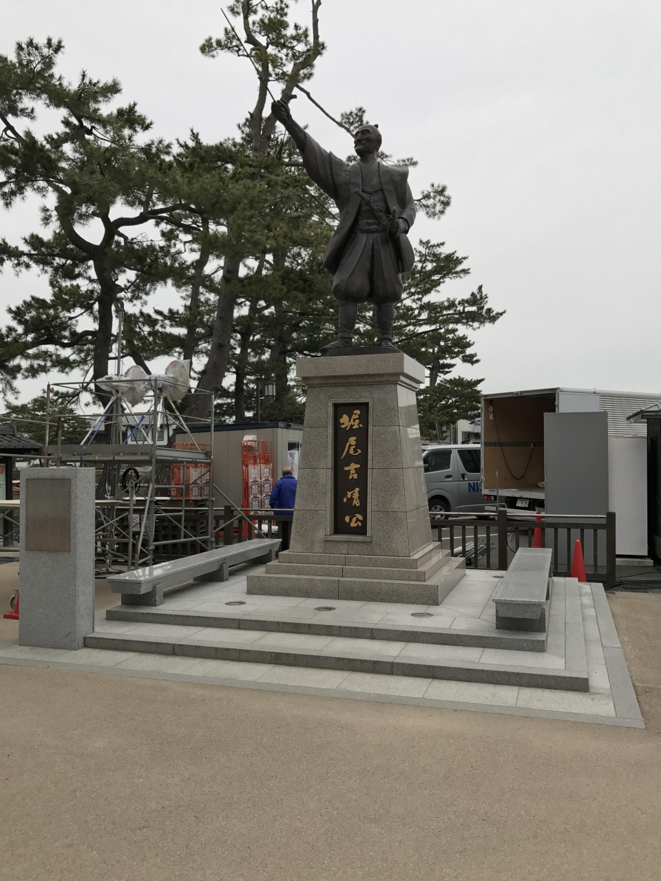 堀尾吉晴公は公式には松江藩主にはなっておられません。しかし松江城の建立を含めた治世に於いて、忠氏とは二元政治を行い、忠晴の時代には後見として政務を代行したこともあり、松江藩の〝実質的な初代藩主〟とみなされることが多く、その功績を伝えるべく建立されたのが、大手前広場に立つこの〝堀尾吉晴公像〟になります。
