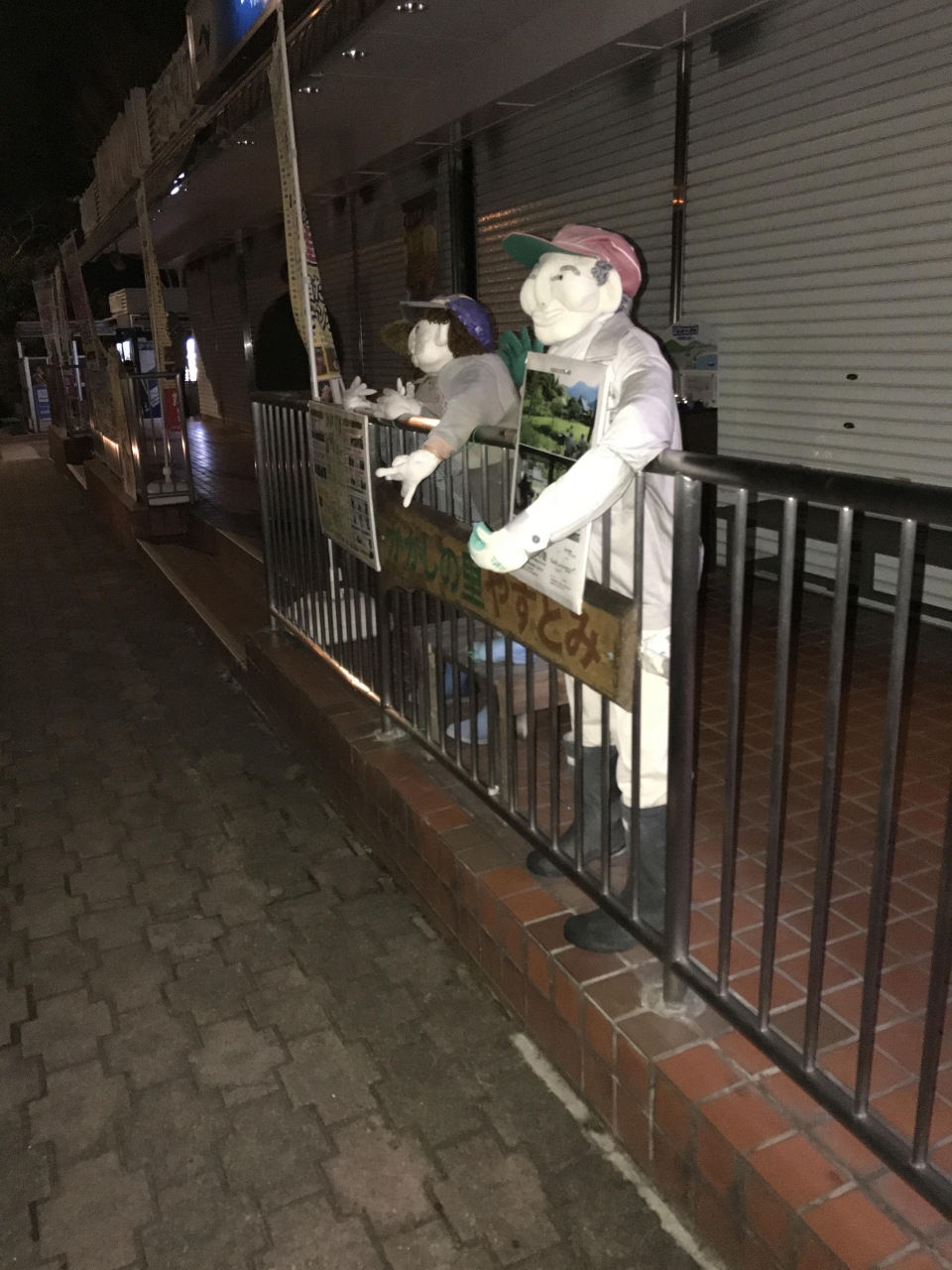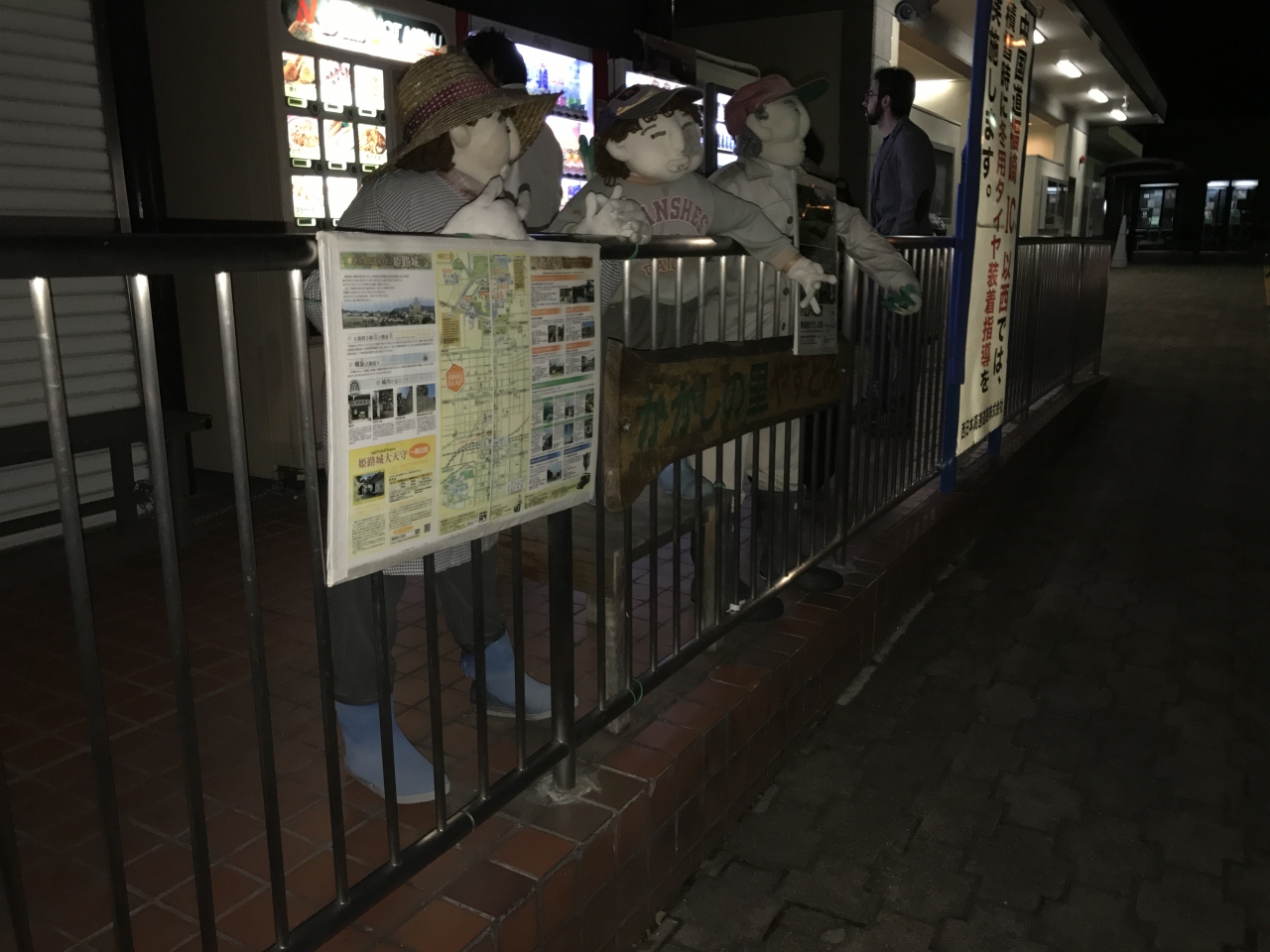 安富パーキングエリア、姫路市最北端に位置するパーキングエリアは山陰方面から京阪神へと向かう高速バスの休憩所となっています。案山子の里として知られているこの一帯、パーキングエリア内にも案山子が置かれており、観光客の写真撮影の場として賑わっています。