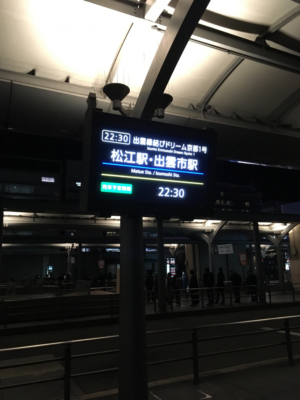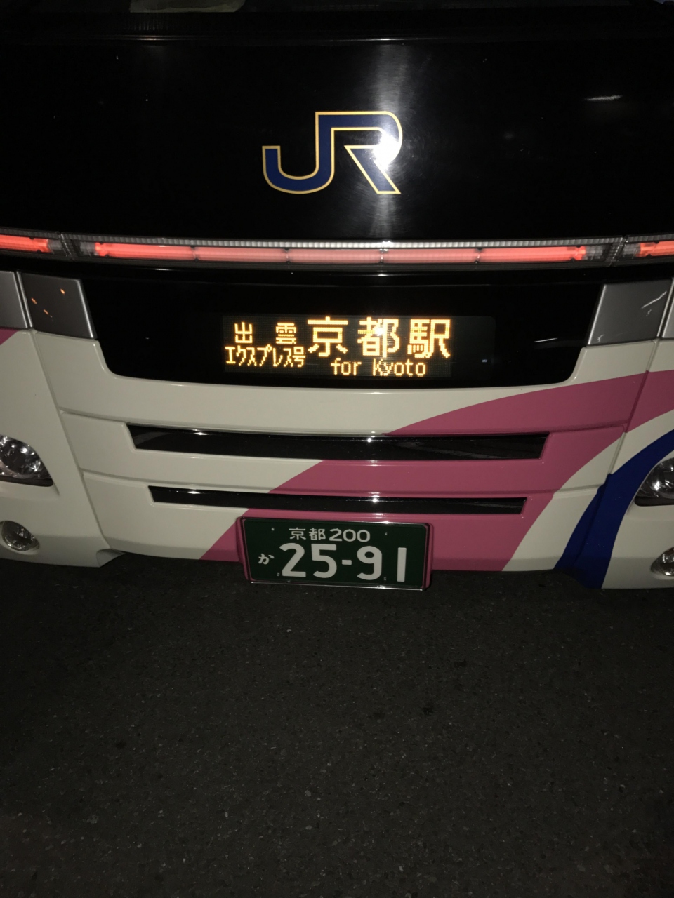 西日本ジェイアールバス、ジェイアール西日本バスではありません(笑)。近年運輸業に吹く逆風の影響で、日本全国の高速バス網から大手バス会社が次々と撤退していく中、減便はしてもその後を引き受けることが多くなったジェイアールバス。京都~松江・出雲を結ぶ〝出雲エキスプレス京都号〟も例には漏れず、今年2月28日を以って京阪バスと一畑バスが撤退し、西日本と中国ジェイアールバスでの1日3便に変わりました。