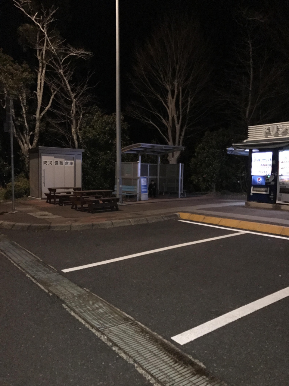 中国道赤松パーキングエリア、以前は途中休憩がなかった京都~出雲市間の夜行高速バスでしたが、3月1日から京都発の出発時刻が繰り上がり、その絡みで赤松パーキングエリアに停車するようになりました。