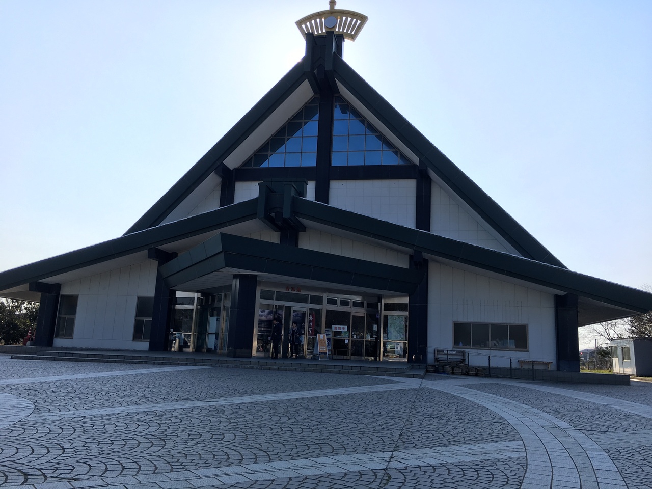 道の駅大社ご縁の広場の資料館として建てられている〝吉兆館〟、屋根には吉兆の扇と鉾が取り付けてある和風の神社様式の建物です。