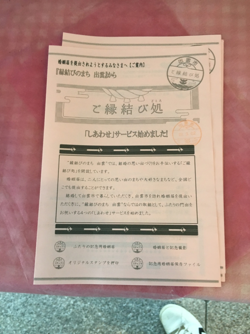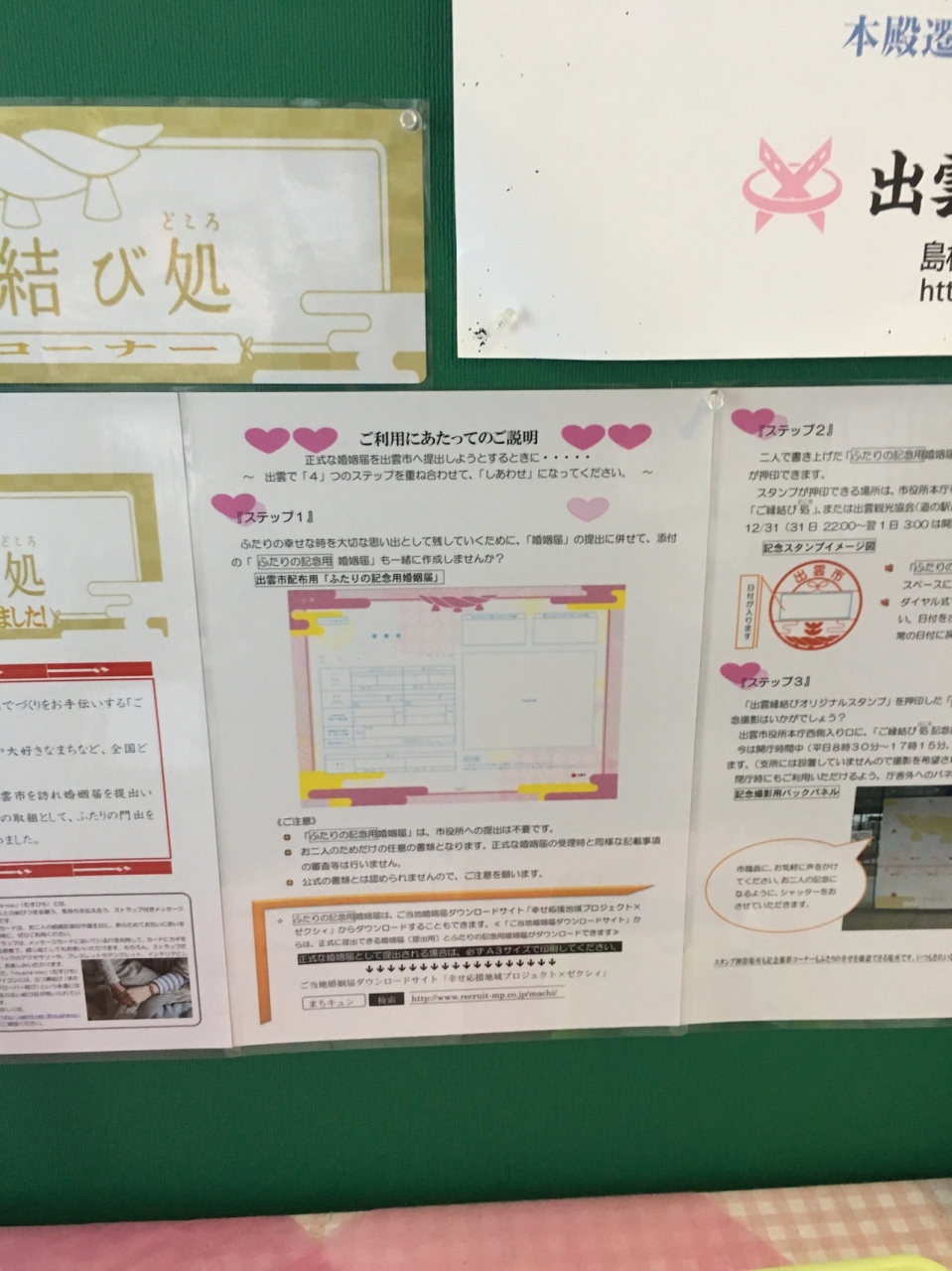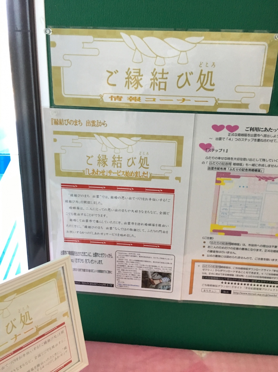 出雲阿国の像隣にある〝道の駅大社ご縁広場〟。普通の道の駅とは違って産直の品物等は扱っておらず、地元の情報ステーション的な意味合いの場所でした。