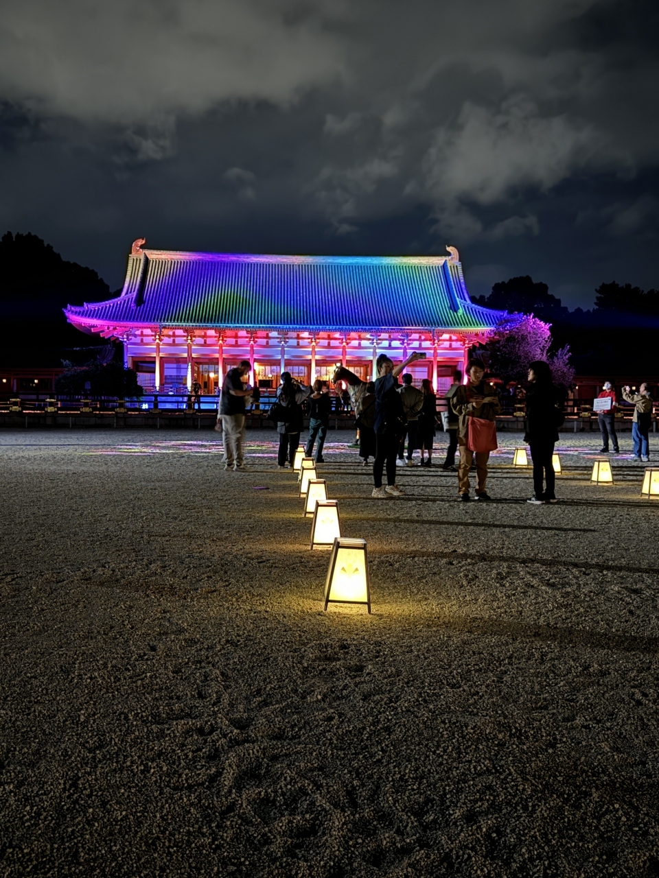 確かに歴史がある訳では無いが、平安京を模した建物に映るライトアップは、それなりに荘厳さを感じられるものとなっている。