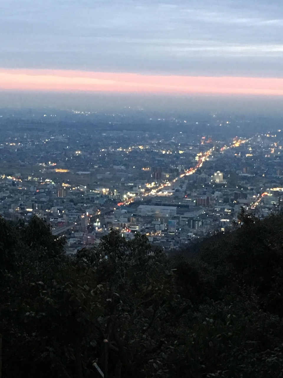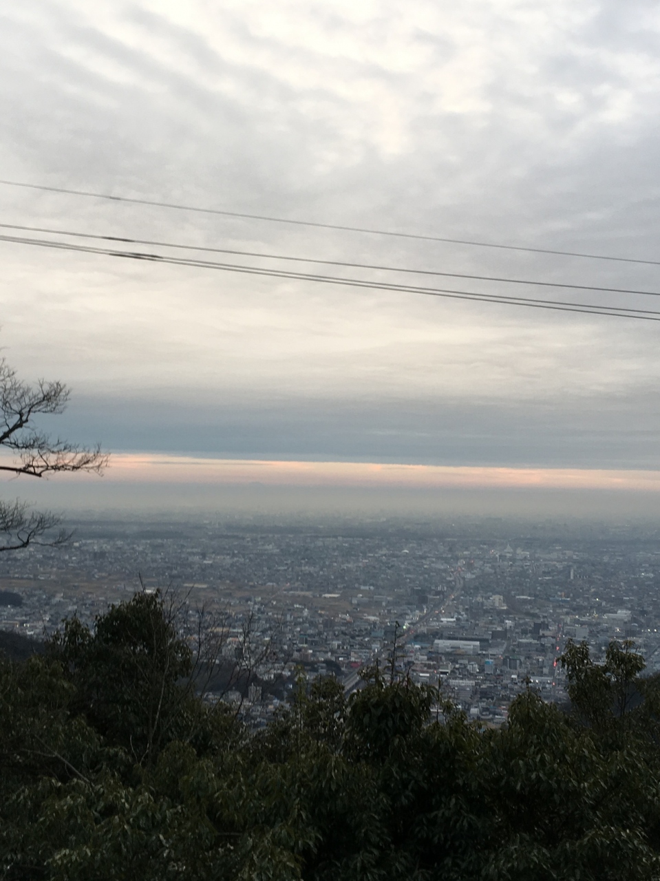 通常の運行は15分間隔ですが、団体や多客期には随時運航となるので特に乗れないという心配は必要ありません。今回は16:15山麓駅発に乗りましたが、山頂部施設の最終入場時間は過ぎており、遊歩道の散策のみしてきました。それだけでも標高349mの金華山から見下ろす岐阜市内の夕暮れの様子はなかなかおつなものでした。また天気が良ければ滋賀と岐阜の県境に聳える秀峰伊吹山も望むことができます。