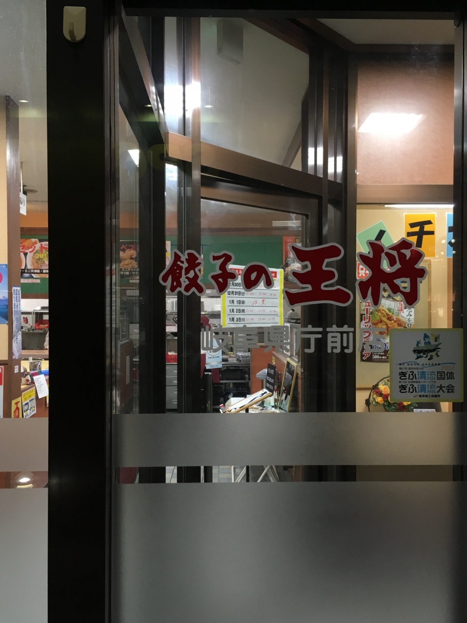 年末の月曜日ゆえ、いつもと勝手が違う行程になったこともあり、ろくに休憩も取らず車で走っていたのでみょうにお腹が減ってしまったので、岐阜市内で早めにとることを決め、信号待ちをしている時にちょうどあった餃子の王将岐阜県庁前店に入りました。