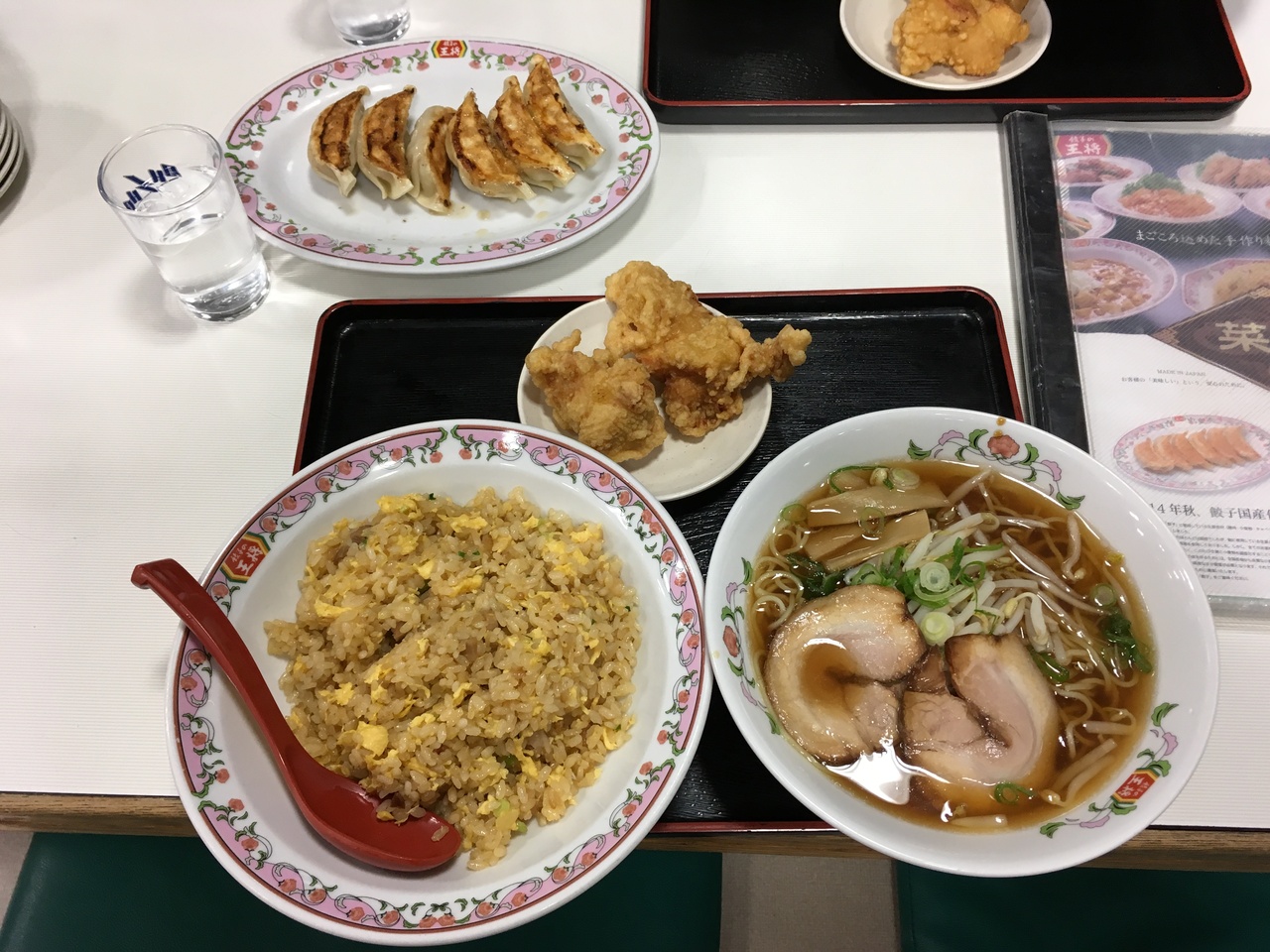歴史は長いようですが、改装されているようで店内はとても綺麗です。最近増えている店内禁煙タイプのお店ゆえ、不快感なく食事をすることができます。またメニューも関西店舗とは若干違うようで、見慣れないメニューもたくさんありました。そのため定番メニューをやめて、Aセットチャーハン大盛+餃子というメニューにチャレンジ。天津飯3人前を5分以内で食べられれば無料という最近見かけなくなったチラシが貼られているものの、歳を取ったのかゆっくりしか食べられなくなっていました。
