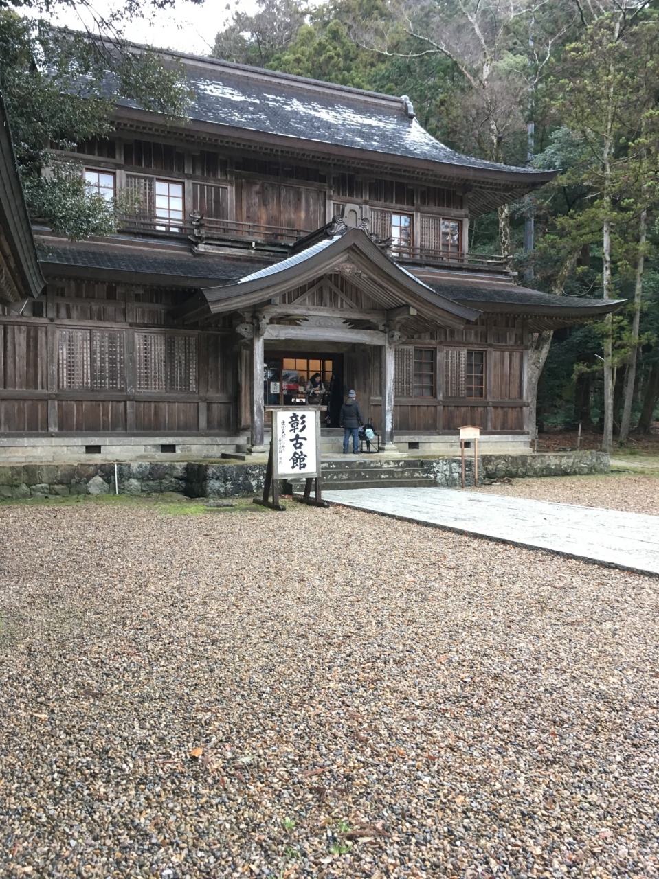 出雲大社本殿北西側に位置する彰古館。元々は四の鳥居付近に建立されたものを移築し、大正3(1914)年にオープンした資料館です。