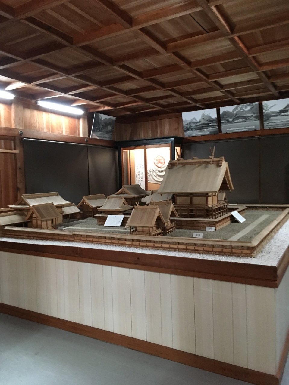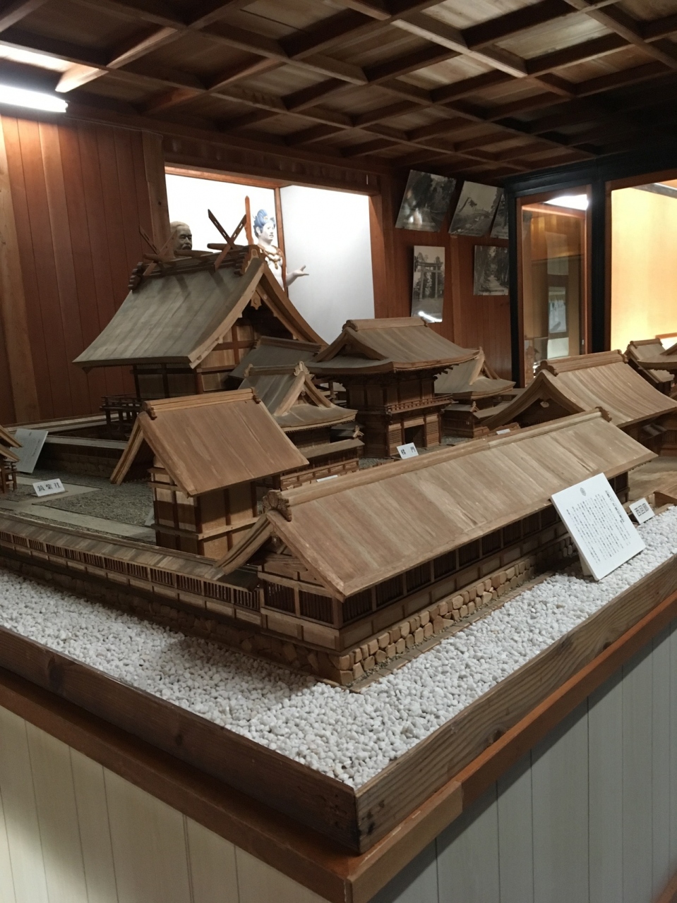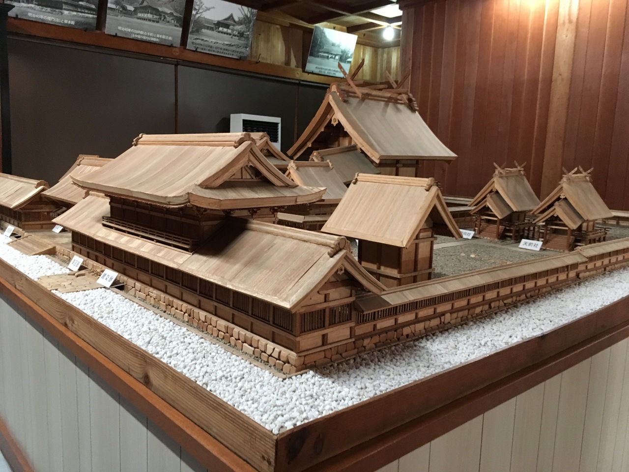 数多くの弁天様や大黒様の木像が所狭しと並んでおり、そのお顔を拝見すると不思議と口元が緩んで和やかな気持ちになれます。その他雅楽で使われる楽器や、出雲大社に伝わる古文書が展示してある他、1/30に作られた出雲大社の精巧なミニチュアが飾られています。