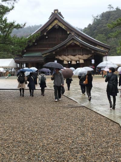 出雲大社に於ける〝神前結婚〟ができる場所が神楽殿の他、北島国造館、おくにがえり館があります。その全てが会場となった高円宮典子さまの結婚式以来、参拝者は増えたとの話を聞きました。神楽殿で真剣に縁結びを願う女子陣の姿を後ろから見ていると、なにか祈願をするのが申し訳なく思ってしまいました。- 旅行時期