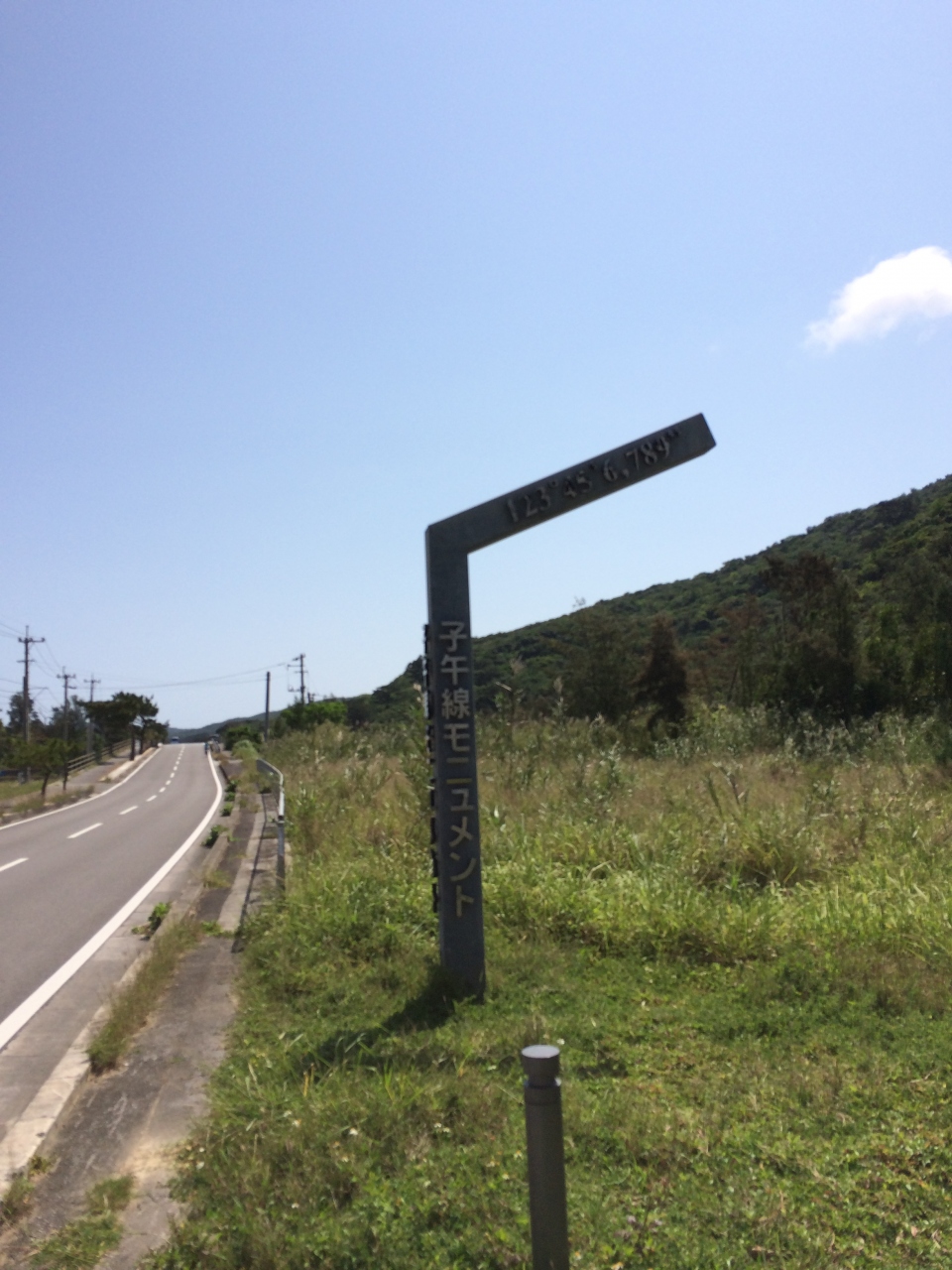 西表島祖納集落にあります。北緯123度45分6789秒の子午線が通る場所として、白浜集落にあるもの同様モニュメントが建立されています。