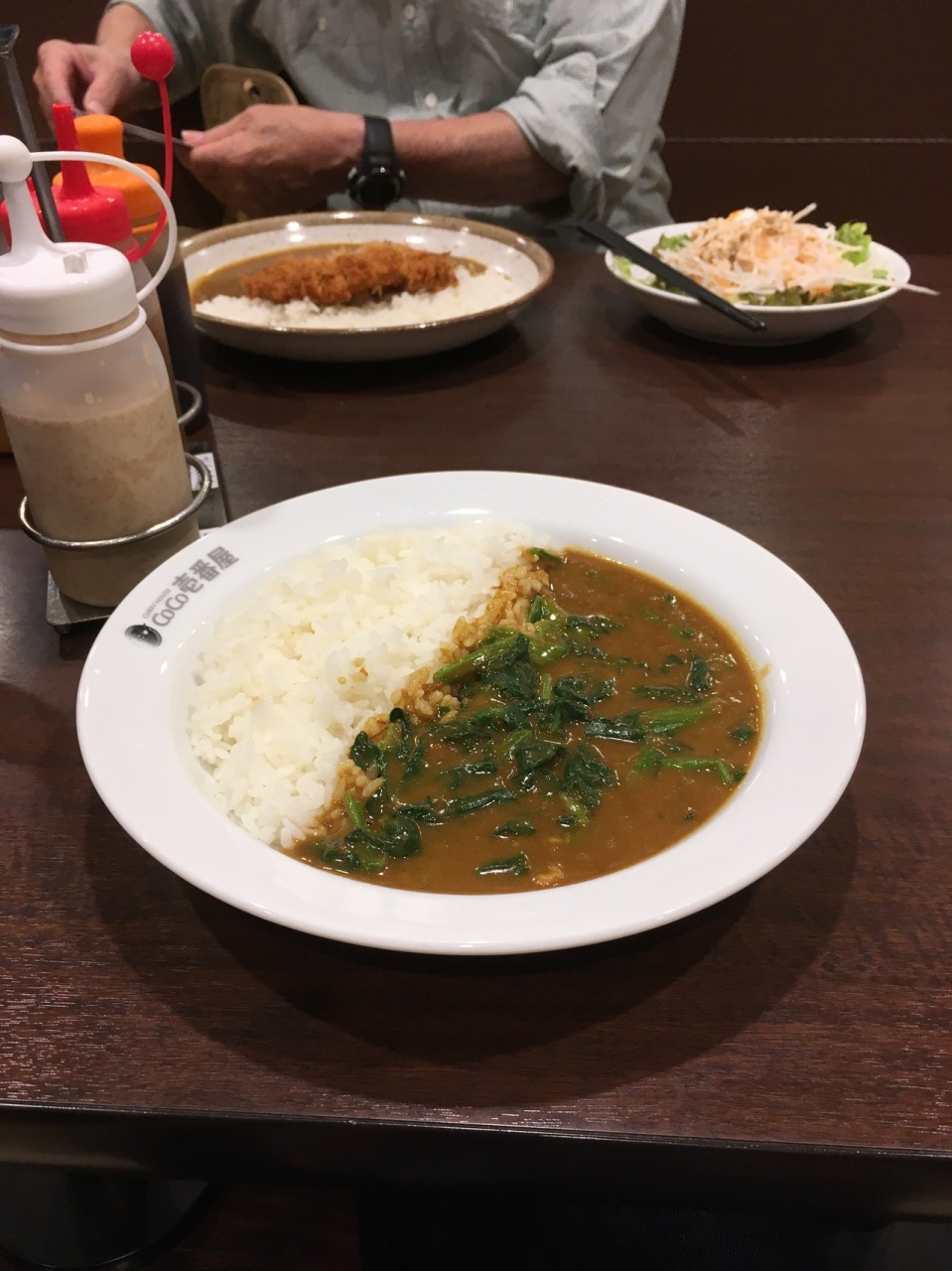 久しぶりに頼んだのはホウレンソウカレー普通普通、つまり300gの辛さ普通というやつです。食べた瞬間懐かしさを感じたことからご無沙汰だった期間を感じました。
