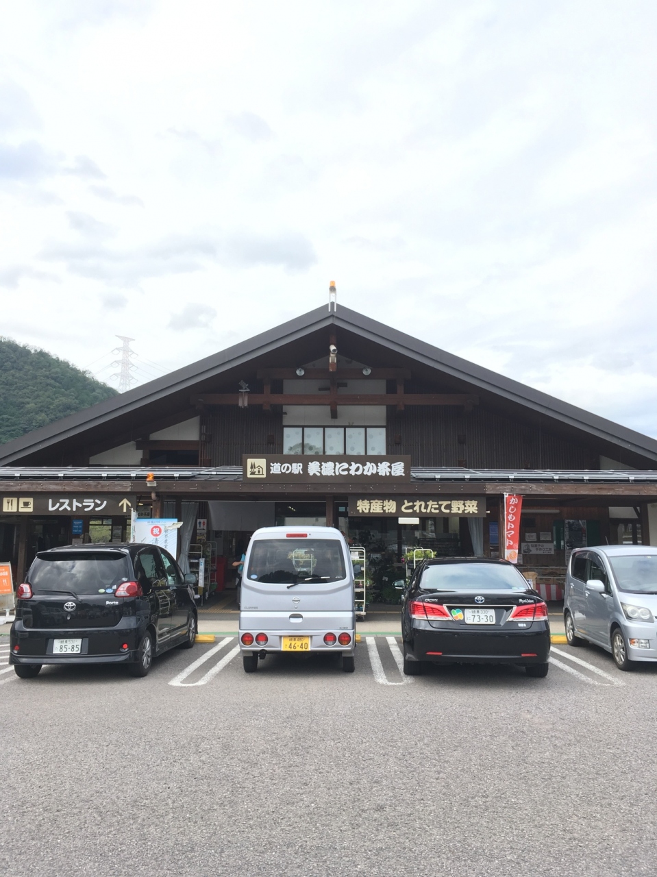岐阜県美濃市の道の駅美濃にわか茶屋、市内中心部から少し外れたところにありますが、一服するために立ち寄ったところ結構混雑していました。火曜日の午後という時間帯にも関わらず駐車場は一杯だったため、マナーの悪さを感じながら路肩に停めてささっと用を足しました。