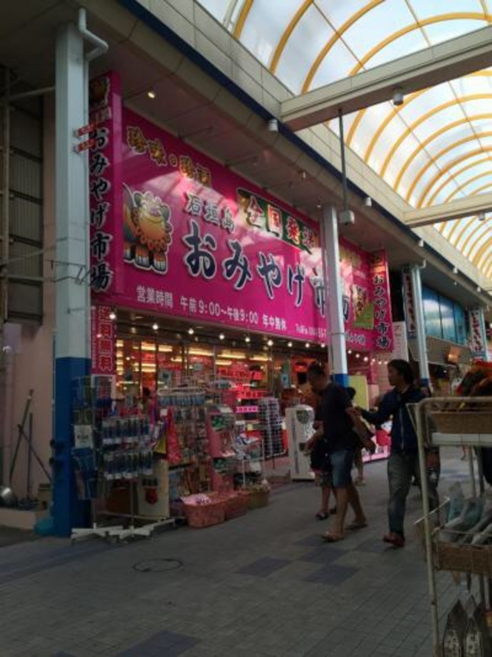 ユーグレナモール内にある島のみやげ館。観光地のお土産物屋にはどこでも賛否論はあるものの、空港で必ず見かける『ピンクの紙袋』の多さからも利用者数がわかります。