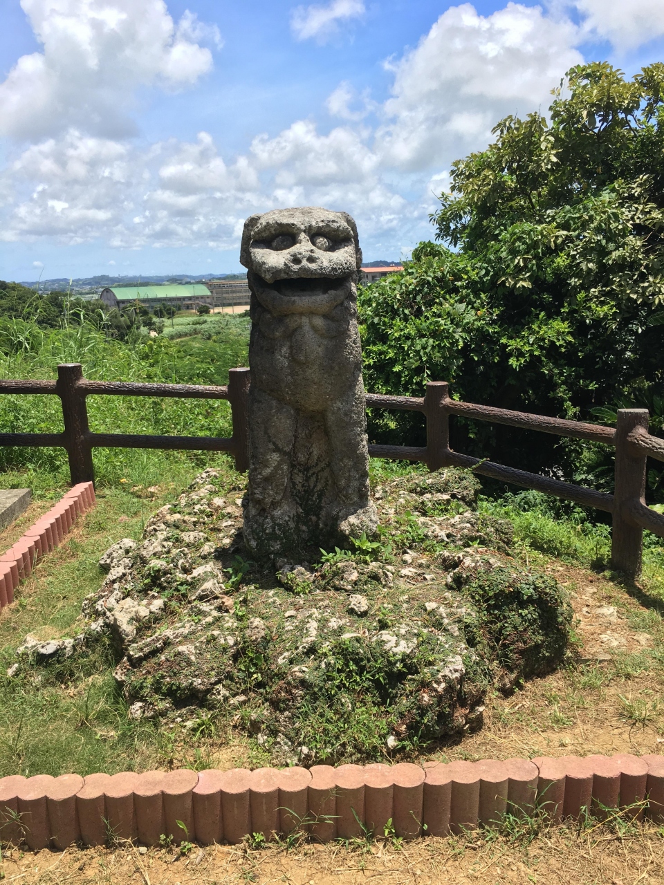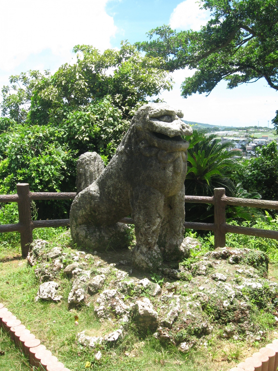 今では駐車場が作られ、一部木が生い茂っていて見通しのきかないところが場所がありますが、ほとんどは視界が広がっています。戦時中の写真では石獅子がポツンと置かれているだけのため、それを弾除けにするしかなかったようにも思えます。弾痕の残っているものは沖縄県の各地に残ってはいますが、観光地とされる場所ではあまりないようにも思えます。勢理城跡という謂れすらわからない丘の上に立つ石獅子と、その敷地内から見られる景色は相反するような意味合いも感じられますが、やはりここも戦場となった史実を忘れないようにすることにより、沖縄全土が戦場になったことを肌で感じることになるのではと改めて思います。- 旅行時期