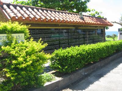 今年平成28(2016)年2月28日にも宿泊し2回目となります。本島から約100m程離れ奥武島へと入るとすぐに到着しますが、今回は同宿者がおりレンタカーが停まっていたので、前回と同様敷地前に車を停めて歩いて行きます。そしてまず最初に迎えてくれるのは看板犬銀ちゃん。吠えられなかったことで安心し、こんばんは〜の挨拶と共にお邪魔します。