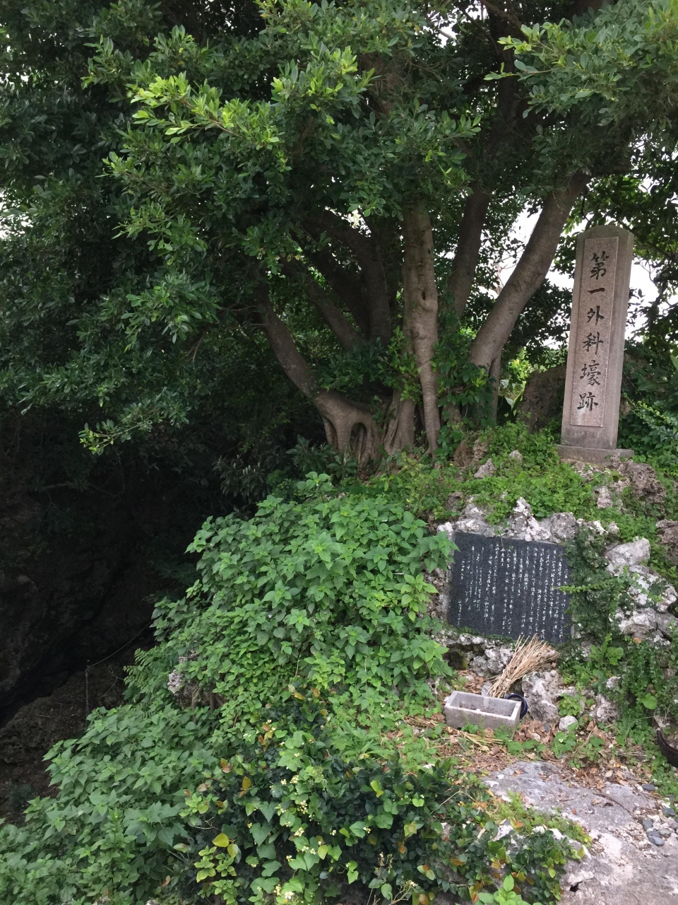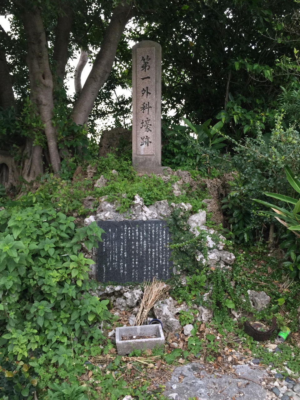 国道側の入口に小さく立っている?第一外科壕入口?の碑。そして壕の入口に立つ?第一外科壕跡?の碑と書かれた所々読めなくなっている由来文が書かれた碑が一層人があまり立ち寄らない場所だと印象付けています。それが余計に胸を締め付けるようにも思えますが…。