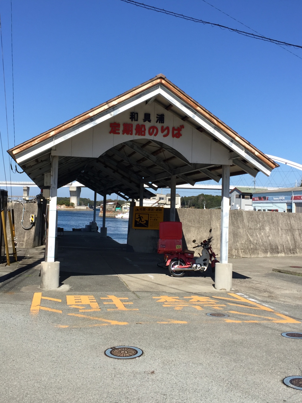 一日9便の賢島〜間崎島〜和具を結ぶあご湾定期船の発着所である和具港は、漁港の色が濃い田舎の港です。桟橋の他にトイレも完備しており、必要最小限の施設は揃っています。定期船の港としては観光地化されておらず、ただ船に乗ったり下りたりするための施設であるため、観光船の乗下船のように桟橋に船舶を横付けし、ロープを巻きつけてから行われるというものではなく、船首を桟橋先端に当てて乗り降りを終えたのちすぐに出発するという方式が取られています。