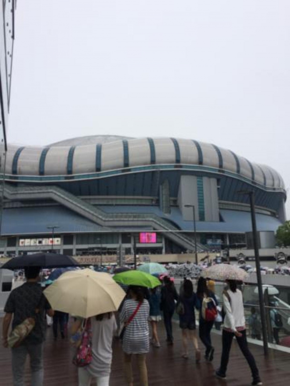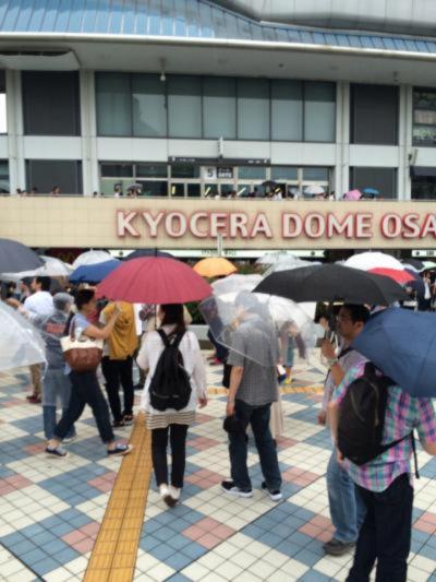 2年ぶりの京セラドーム、しかも目的も同じ。しかも雨降りまでも・・・。しかしその時は京セラドームの前にはカインズとイオンモール等の大型店舗はありませんでした。しかしこの雨天ゆえ入場前のその他大勢が居場所を求めて屯し、大賑わいでした。