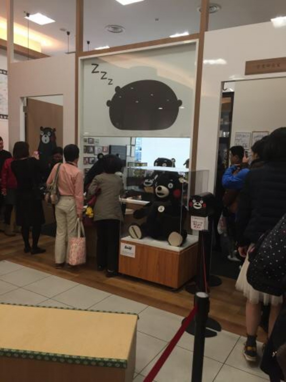 地元の人ならいざ知らず、一観光客には分かり辛い?鶴屋百貨店?と?テトリアくまもと?の違い。実は?鶴屋百貨店?を構成する4つの建物のうち、再開発ビルとして建てられたもののひとつです。中層階には鶴屋百貨店の販売店が入っているものの、その他には熊本の各種交流施設が入居しています。その中で圧倒的な知名度を誇る場所、それが1階の?くまモンスクエア?となります。それゆえ?くまモン?在室時には前後の時間には大変混雑しますが、平日ならばあまり売り場までは混雑はしないようでした。