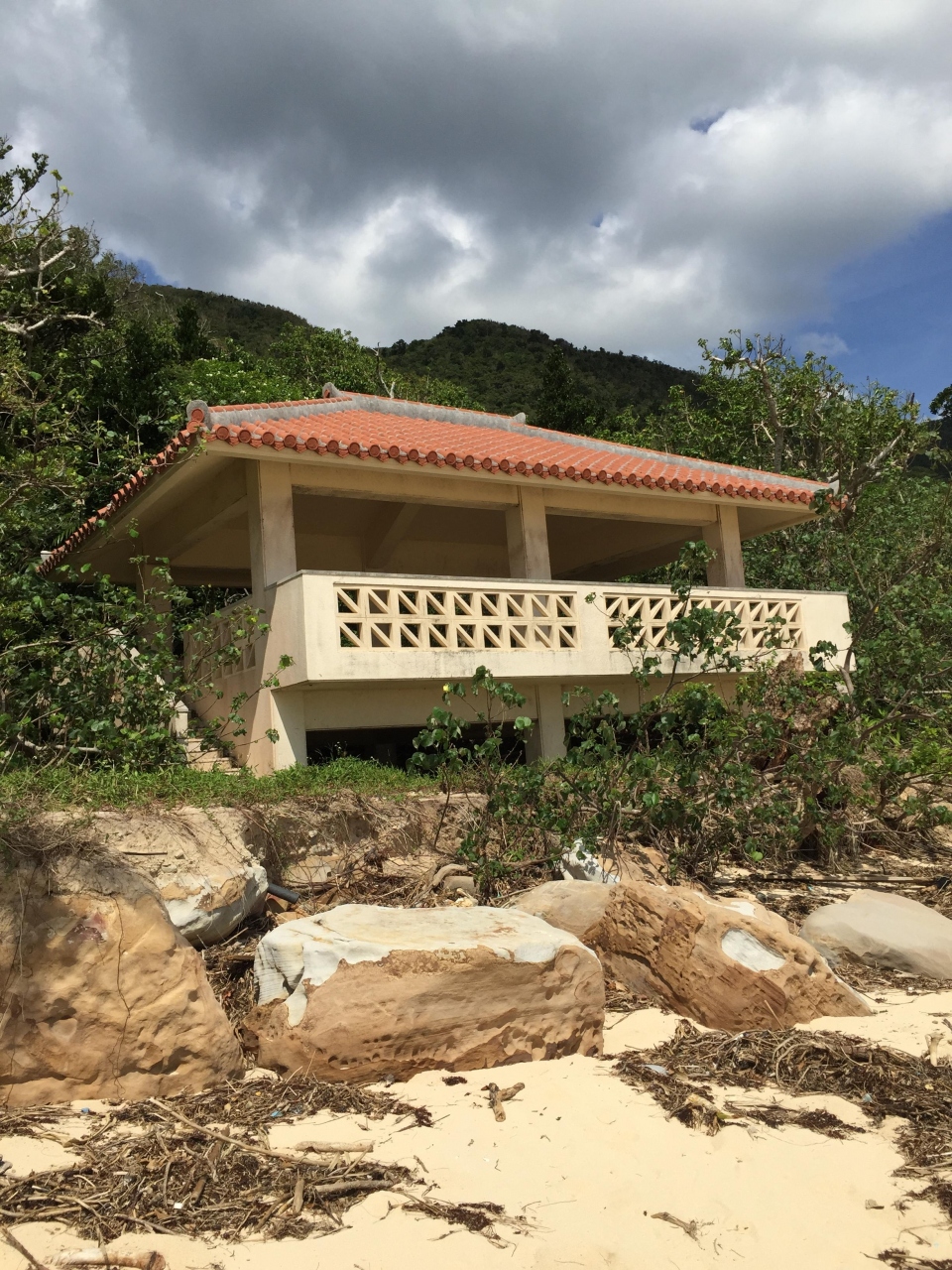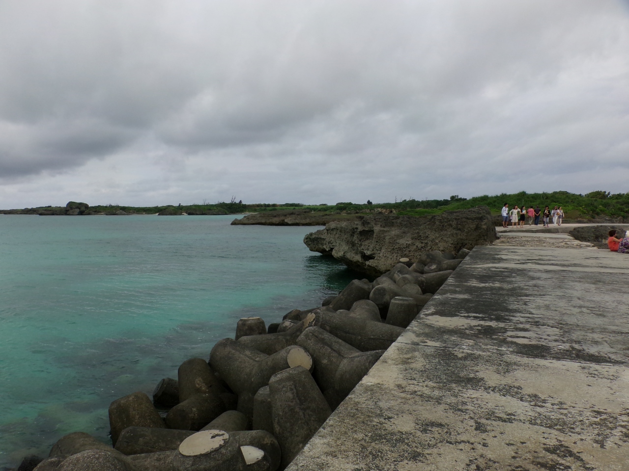 浜を二分するように旧渡口桟橋と防波堤があり、それが外洋を遮断するような形で穏やかな海水浴場を造りだしているようにいるように思えます。以前宮古島平良港と伊良部島渡口港を結ぶ航路がありましたが、昭和15(1940)年に起こった伊良部丸の遭難事故。渡口港に迎えに来た住人の目の前での事故によって73名の犠牲者を出しました。航路の欠点で起こってしまった遭難事故によって、宮古島と伊良部島を結ぶ橋梁の必要性が言われたことはこの事故がきっかけになったという意見もあります。