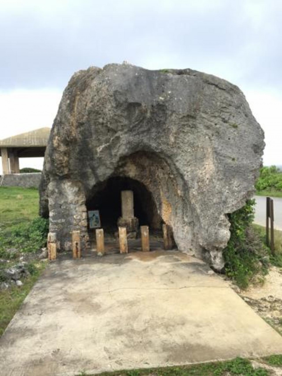 私の行く場所にはどうして美人悲話の伝承が多いのでしょうか…。宮古島最東端東平安名崎(ひがしへんなざき)へと向かう道中、一際目を引く巨岩が見えてきます。マムヤの墓、