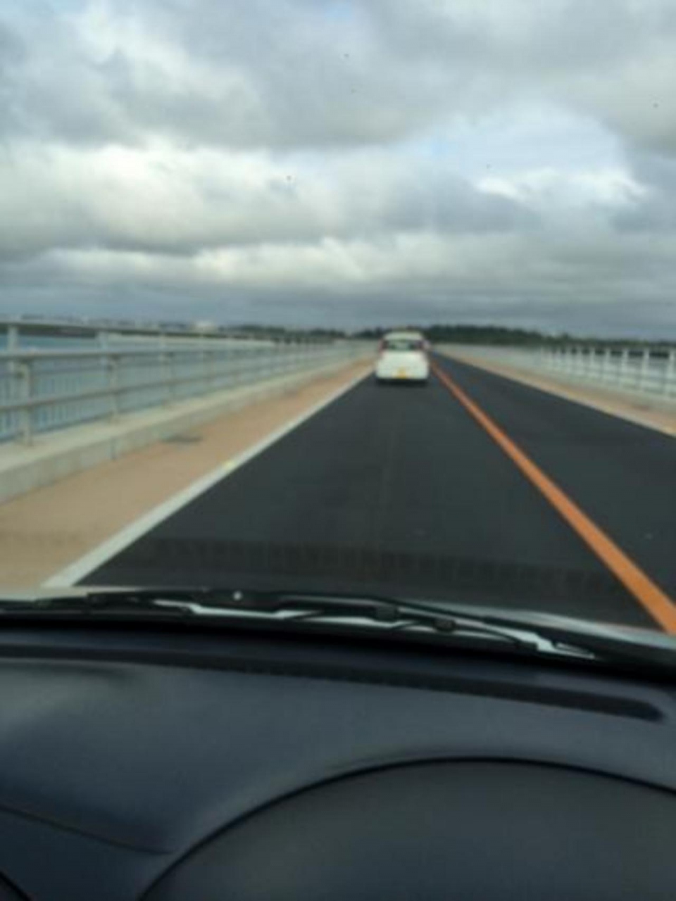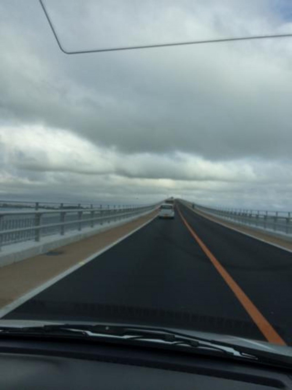 宮古島から伊良部島までの間にかかる全長3,540mの伊良部大橋は、無料の橋としては日本最長です。平成27年1月31日に供用開始されました。交通路以外に水の通り道でもあり、伊良部島の水事情は飛躍的に改善されたようです。