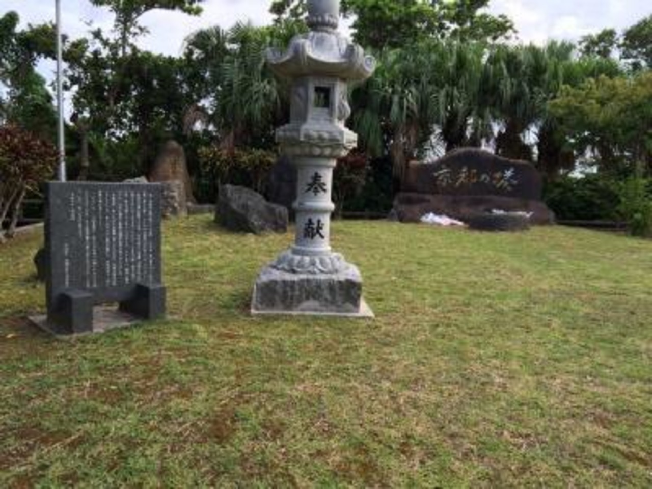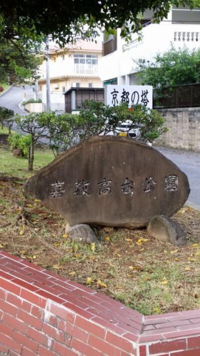 この地になぜ京都の塔と同一敷地内に嘉数の塔が建てられているのか?実は嘉数の戦いの主力部隊だったのは第62師団第63歩兵旅団第13大隊でした。京都師団区で集められた兵士が多く、そのほとんどが2度と故郷を見ることなく、この嘉数の地で亡くなっています。また部隊に協力をした地元嘉数の住人も戦闘に巻き込まれて亡くなられました。その協力に対し沖縄京都の塔賛助会の働きかけもあり、同じ敷地で仲良く立ち並ぶ姿を現在でも見ることができます。