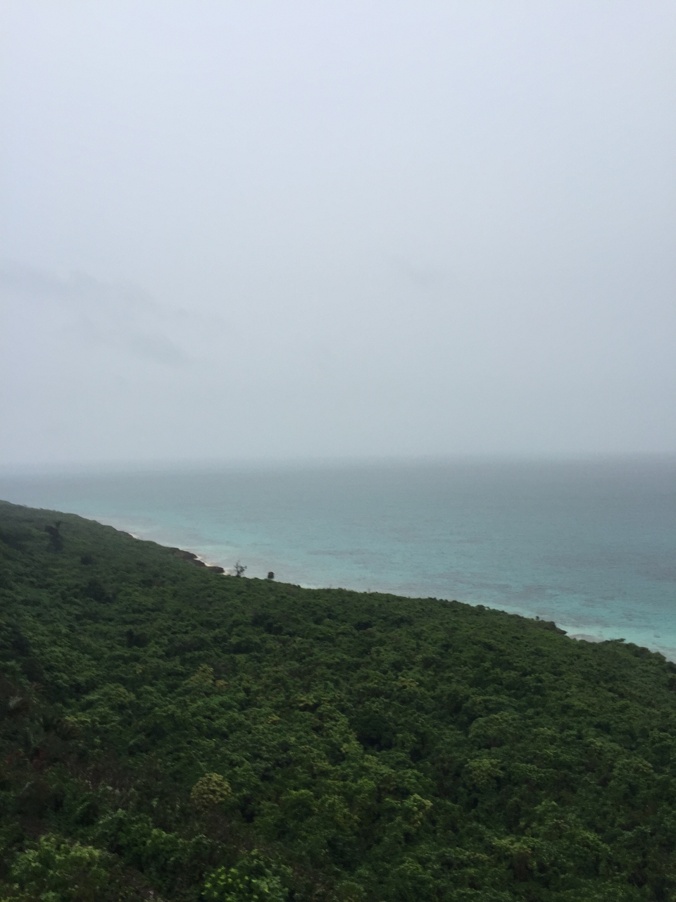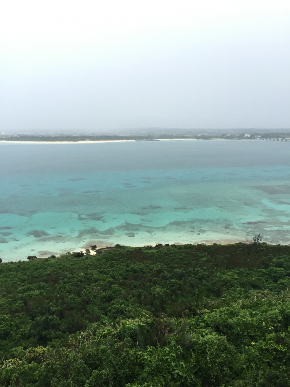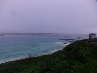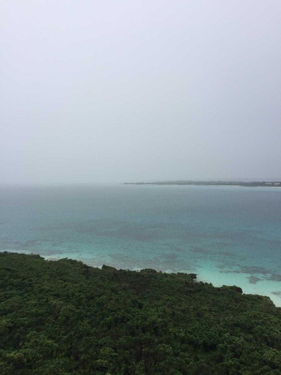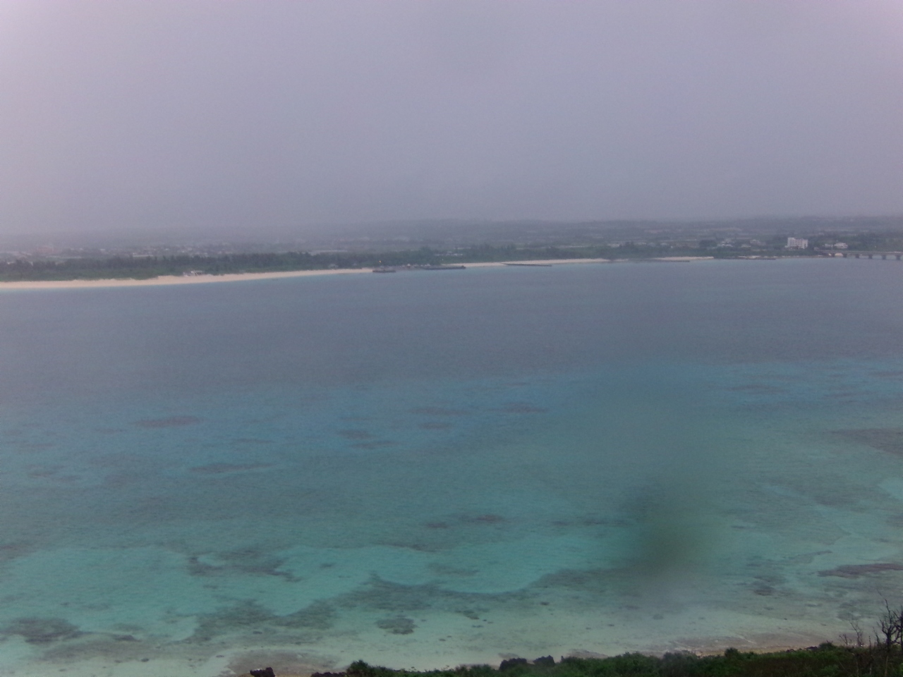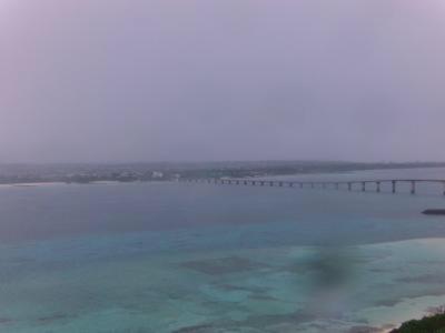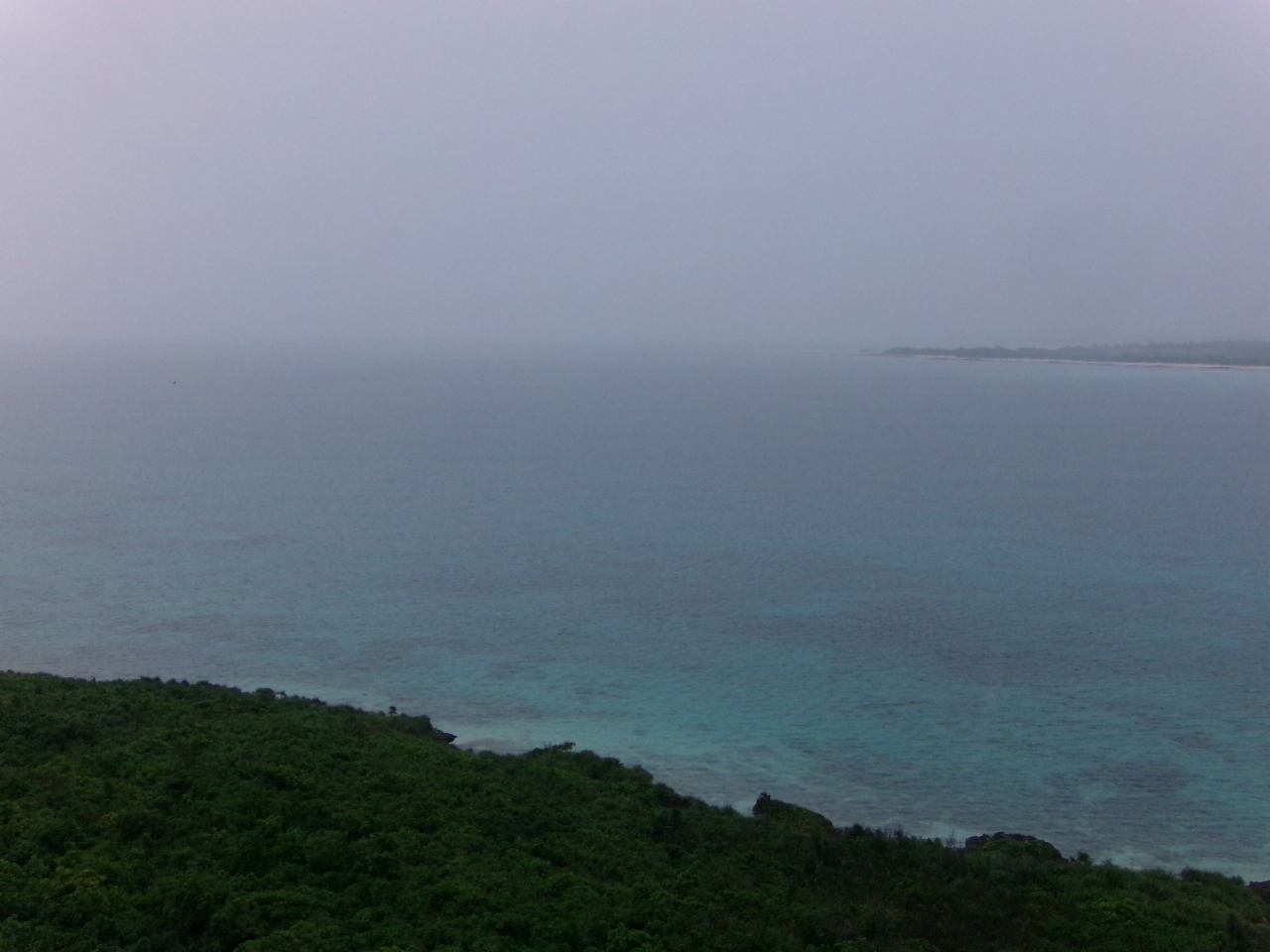 来間大橋を渡っている間もずっと見えている建物ゆえ、行くことも容易だろうと考えていたことは甘かった。集落の海側に位置しているものの、その集落内の道が結構ややこしい道であり、またナビの行先表示ができなかったこともあり止まっては進むを繰り返し、やっと来間小中学校の裏手に位置することがわかり辿り着くことができました。展望台へと上がるには結構急な階段があり、また展望台内部にもまた階段があるため、脚力は必要だと思いました。本来なら眺望に言葉を失うところなのでしょうが、残念ながら結構キツイ雨が降っている状況では、透き通る海の様子は全くわかりません。それでも階段を登って景色を眺めますが…う〜ん…イマイチってところでした。宮古島中心部にホテルを取っていてレンタカーがあると簡単に来られる場所ではあるため、天候に恵まれない時は日を変えた方が良いと思います。