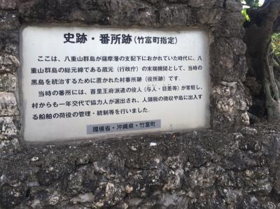 黒島ビジターセンター隣の緑地にある?番所跡?は、その昔八重山群島が薩摩藩の支配下におかれていた時代に、八重山群島の総元締である蔵元(行政庁)の末端機関として、当時の黒島を統治するために置かれた村番所跡(役所跡)です。当時の番所には、首里王府派遣の役人(与人・目差等)が常駐し、村からも一年交代で協力人が選出され、人頭税の徴収や島に出入する船舶の荷役の管理や統制等を行った場所であったそうです。