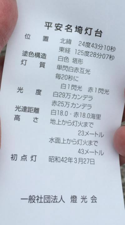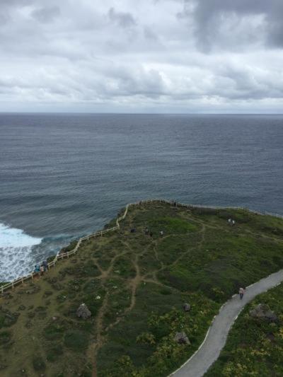 入場料とは言わないそうですが、協力金として300円を入口にて払うシステムになっており、96段のらせん階段を登ると灯台の踊り場へと出ることができます。そこからは太平洋や東シナ海といった海は勿論、平安名灯台を含む名勝東平安名崎の緑地を望むことができます。参観灯台としては平凡な感は否めないものの、標高の高い山がない宮古島ゆえの陸の眺望を望むことができます。標記がややこしいのですが付近一帯は名勝東平安名崎、灯台名は海上保安庁管轄になったときに平安名崎灯台と変更されています。