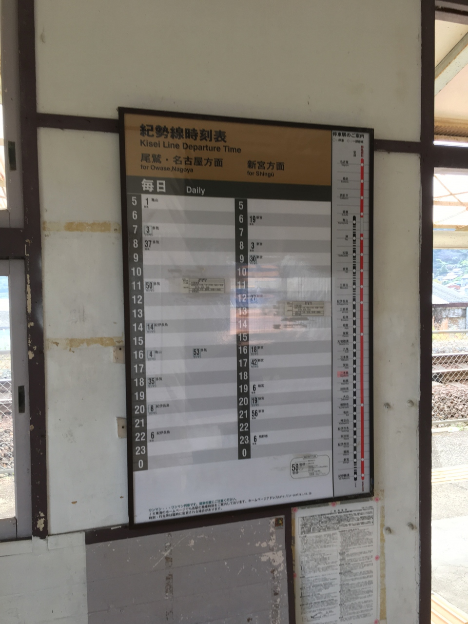 単線区間にある島式ホームを持っていることは、上下線の離合を行います。そのため上下線の出発時刻が同時刻である?わかりやすさ?があります。ただ2時間に1本位の運行なのでなかなか列車に遭遇することはありません。ちなみに国鉄時の?おトイレ?が残っていました。- 旅行時期