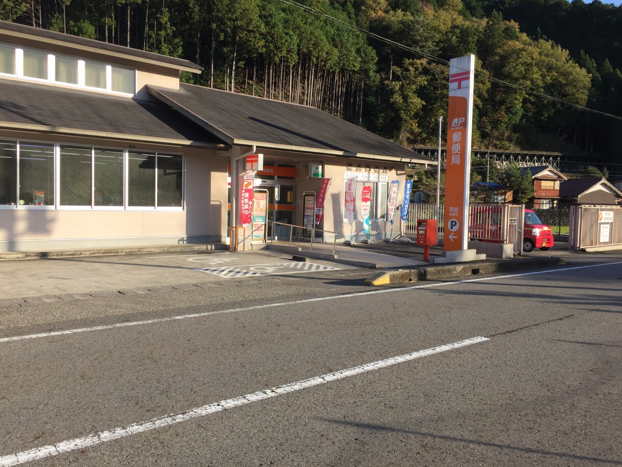 現熊野市で旧紀和町の中心部に位置する入鹿郵便局は、平日18:00・土曜日17:00・日祝日14:00までATMの利用ができる金融機関です。鉱山で栄えた街ではあるものの、今では過疎化が進み、旧紀和町立の入鹿小中学校が熊野市立となって現在に至っています。