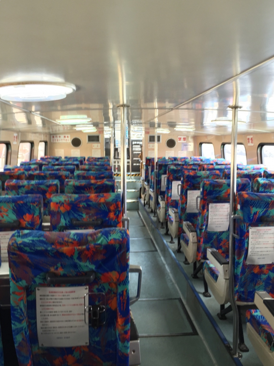 安栄観光船舶同様定員92名(乗員2名含む)のものが多いため、上原欠航時の大原線等一見するととても乗れそうにないような光景を目にすることもあるかと思います。とにかく乗って安心したいという気持ちが先に立つのが人間の悪い癖、急ぐ方に先に行って頂いて、増便を待った方がゆったりできることが多いのも事実です。今回は往復とも安栄観光の船舶でしたが、前回は八重山観光フェリーの大型高速艇?ちゅらさん2?で3席独占して石垣へと帰ってきました。