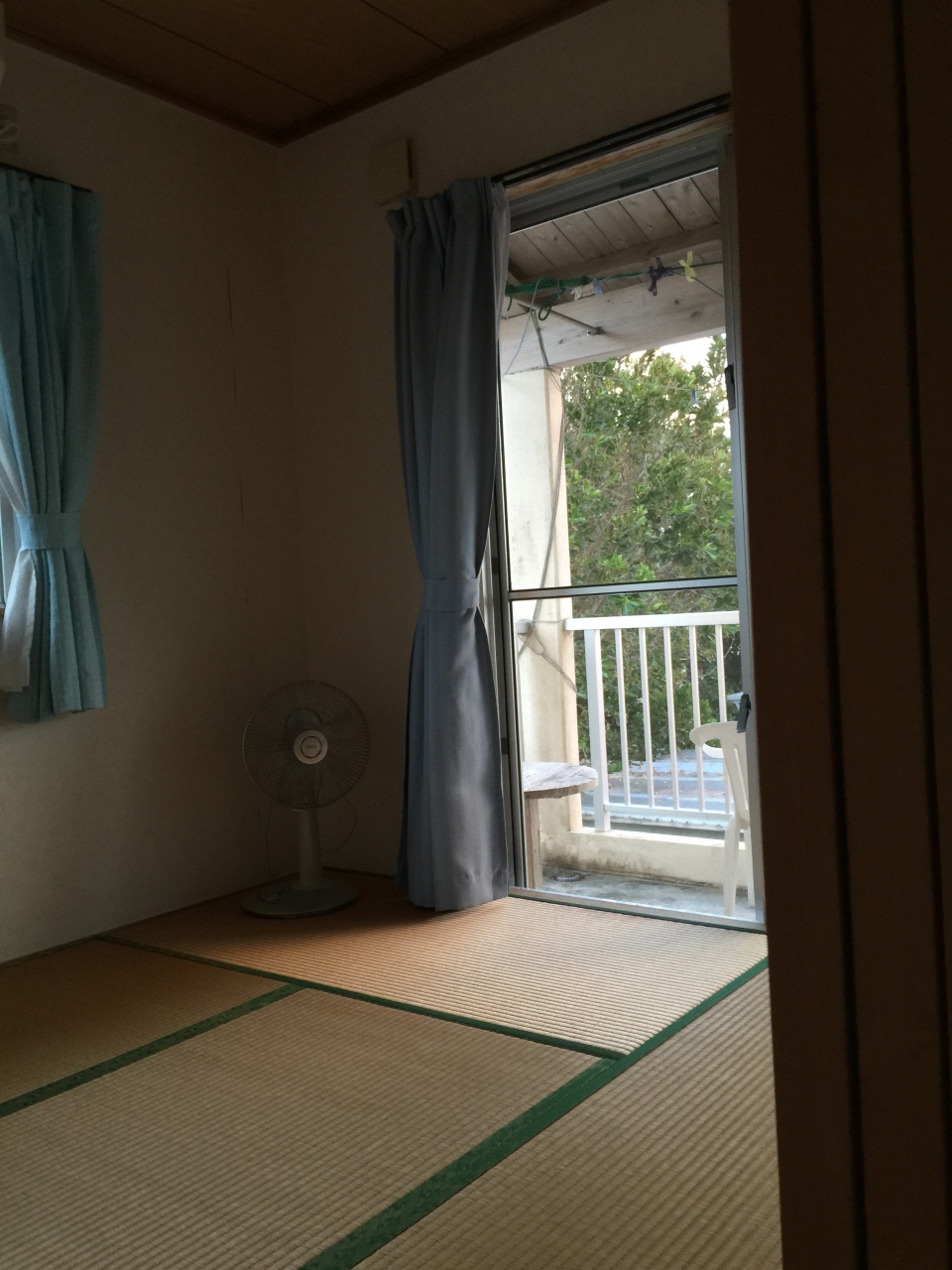 東洋のガラパゴスの異名を持つ西表島は、八重山諸島の離島中の離島ですが、その西表島の中でも船でしか行くことができない場所、それが船浮です。離島中の離島には3軒程の宿泊施設があり、そのひとつである?民宿ふなうき荘?、こちらを今回利用しました。船浮港から一番遠い(笑)ふなうき荘、歩いて2〜3分かかります。船浮海運のオーナーさんが経営するこの民宿は、離島の宿には珍しいバストイレ付のお部屋があります。それがどのようなものなのか…それを見てみたい気持ちもありました。広めの1DKのような建物の和室は、窓からの風景を除けば西表島にいるということを感じさせないものであり至って快適でした。エアコン(暖房なし)扇風機も付いており、無料で利用できます。食事は1階の食堂にて頂く形を取っておられます。