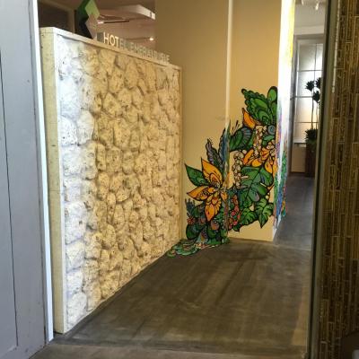 コンセプトにあるように共用スペースの壁にはアートデザインが施されており、離島ターミナル界隈のホテルとはまた違う印象を受けました。