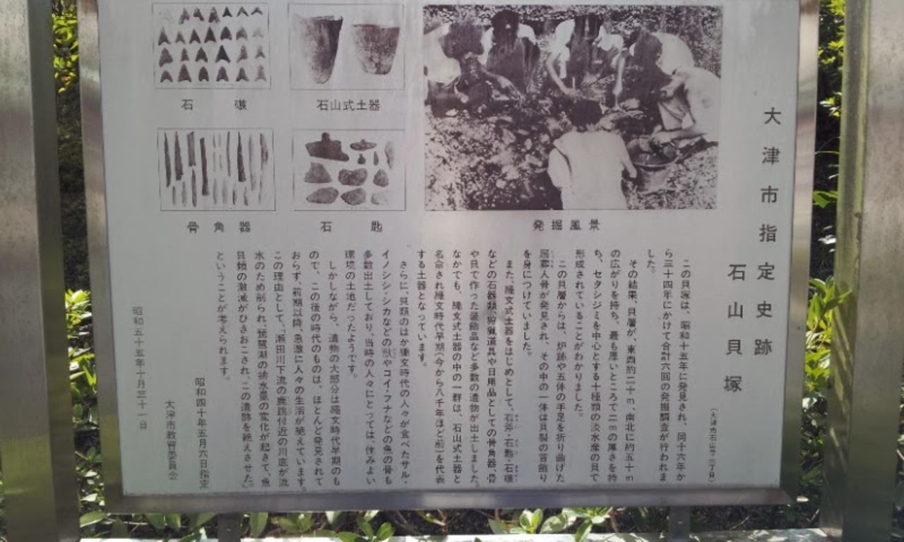 西国三十三番十三番札所“石山寺”前にあります。石山公園と言ってもピンとこないかもしれませんが、市営駐車場から東大門に至る途中、左右にお土産屋さんが並んでいるところです。敷地内に知る人ぞ知る“石山貝塚”があります。お土産屋さんには食堂が併設されており、瀬田川名物“しじみ飯”が味わえます。門前のお店らしく“閉門”に合わせて店じまいになるので注意が必要です。