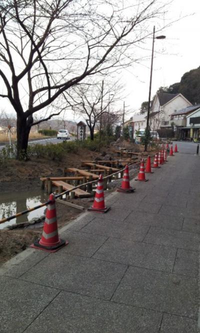 一昔前は県道大津上野線でした。今のようにまっすぐな道ではなく、瀬田川の流れに沿ったクネクネと曲がった道でした。現在は瀬田川縁も護岸工事されており、美しく歩きやすくなっていますが、石山寺東大門から京阪石山寺駅の間の“自転車通行可能”な歩道に旧道の名残を見ることができます。道端には“石山温泉”の宿があり、施設によっては食事もできますので、約900mの道のりを歩いてみてはいかがでしょうか?