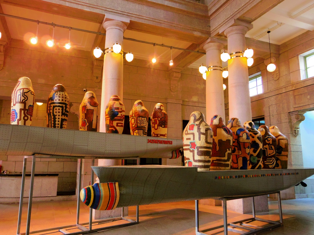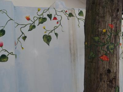 駱山公園を下りながら歩いていると、ちょうど路上美術館だと思える場所に。