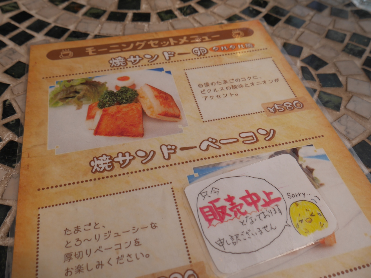 11:30まではモーニングのメニューのみで、焼サンドとフレンチトーストのみでした。