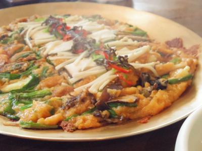 パジョンは今までに食べたことのない食感で、ふわふわで柔らかめな感じでした。個人的にはいつも食べているチヂミのほうが好みですが、こちらもとてもおいしかったですよ!- 旅行時期