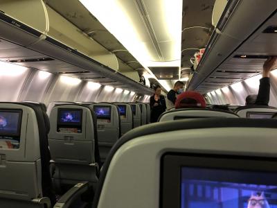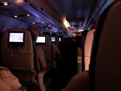 夜便なので機内は暗くなり、4時間弱のフライト。