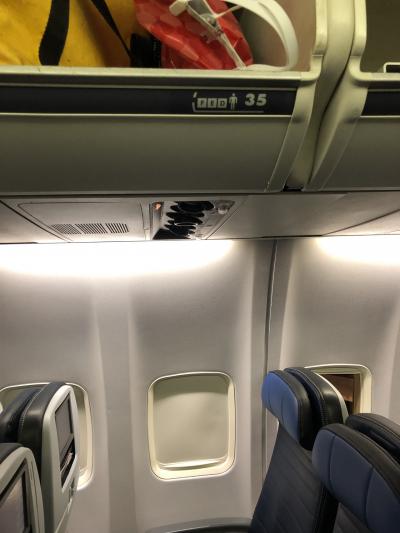 こちらの通路側が自分のシート窓際でも良かったですが、夜便だし夜景だけな...