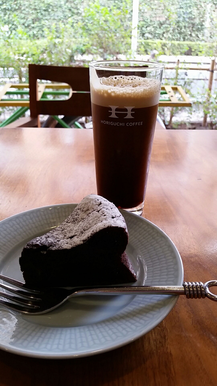 小田急線狛江駅から歩いてすぐ。店内には焙煎工場、カフェ、カウンターが設けられています。この日注文したのはスタウトコーヒーとガトーショコラ。おかわりとしてホットコーヒーもお願いしました。スタウトコーヒーの上の泡が消えないうちにどうぞ、とのことで、飲んでみると、苦みと泡が混ざり合った大人の味。ケーキとの相性もバッチリです。帰りにコーヒー豆を買うときは、いろいろアドバイスをいただきました。
