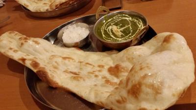 早めのディナーをとるため17:00頃行きました。地下へ階段を下っていくと、客は誰もいません。ラッキーです!サラダ、好みのカレー、ナンのセットメニューが980円。カレーの辛さは選べて、私は辛くないタイプにしました。ほうれん草のカレーは癖になる香ばしさ。ナンは大きく、油たっぷりで、頑張って頬張りましたがお腹いっぱい!何度かお冷のおかわりに来てくれました。ほかのメニューもいただきたいです。