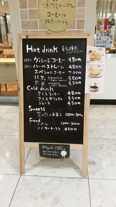 小田原駅東口の地下「HaRuNe」の一角に「菜の花ムーンカフェ」というお店を発見。スイーツ店、雑貨店と隣り合っています。コーヒーの種類は浅煎りと深煎りがあり、私は深煎りをチョイスしました。基本セルフですが、コーヒーは抽出に時間がかかるとのこと、注文したスイーツと一緒に席まで運んでくれました。木製テーブルと椅子に独特のぬくもりがあって、落ち着いた時間を過ごせます。今回いただいたセットメニューのバウムクーヘンは、甘さ控えめでしっとりとした食感が自分好みでした。