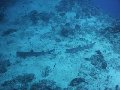 つがいのサメちゃん。水深30m位の所でだらだらしてるようす。邪魔しに行...