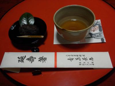 先ず、ウェルカムでおはぎと塩茶が出て来ました。