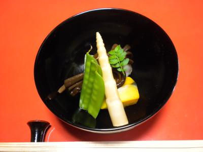 その後、最後のお抹茶と和三盆を使った釣鐘菓子まで、写真のお品書きのとおり(多少順番は前後しましたが)一品ずつ丁度いい頃合いで運ばれて来ました。