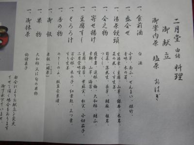 修二会の期間中は宿泊者の夕食は基本的にこの「二月堂由緒料理」だそうです。